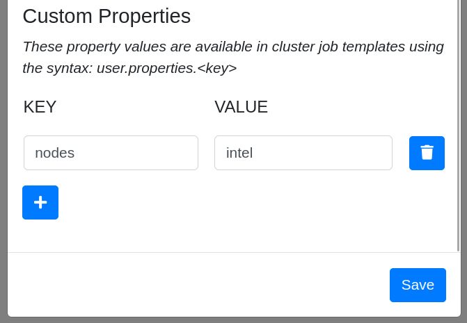 nodeswith a value ofintelfor a user, then when that user submits a job, you can access that property in a template through theuser.properties.nodesvariable.If the job has no user associated with it, the